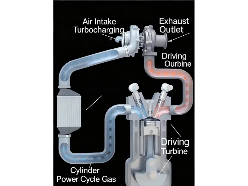 Turbokompresoriai naudoja išmetamąsias dujas turbinai sukti.